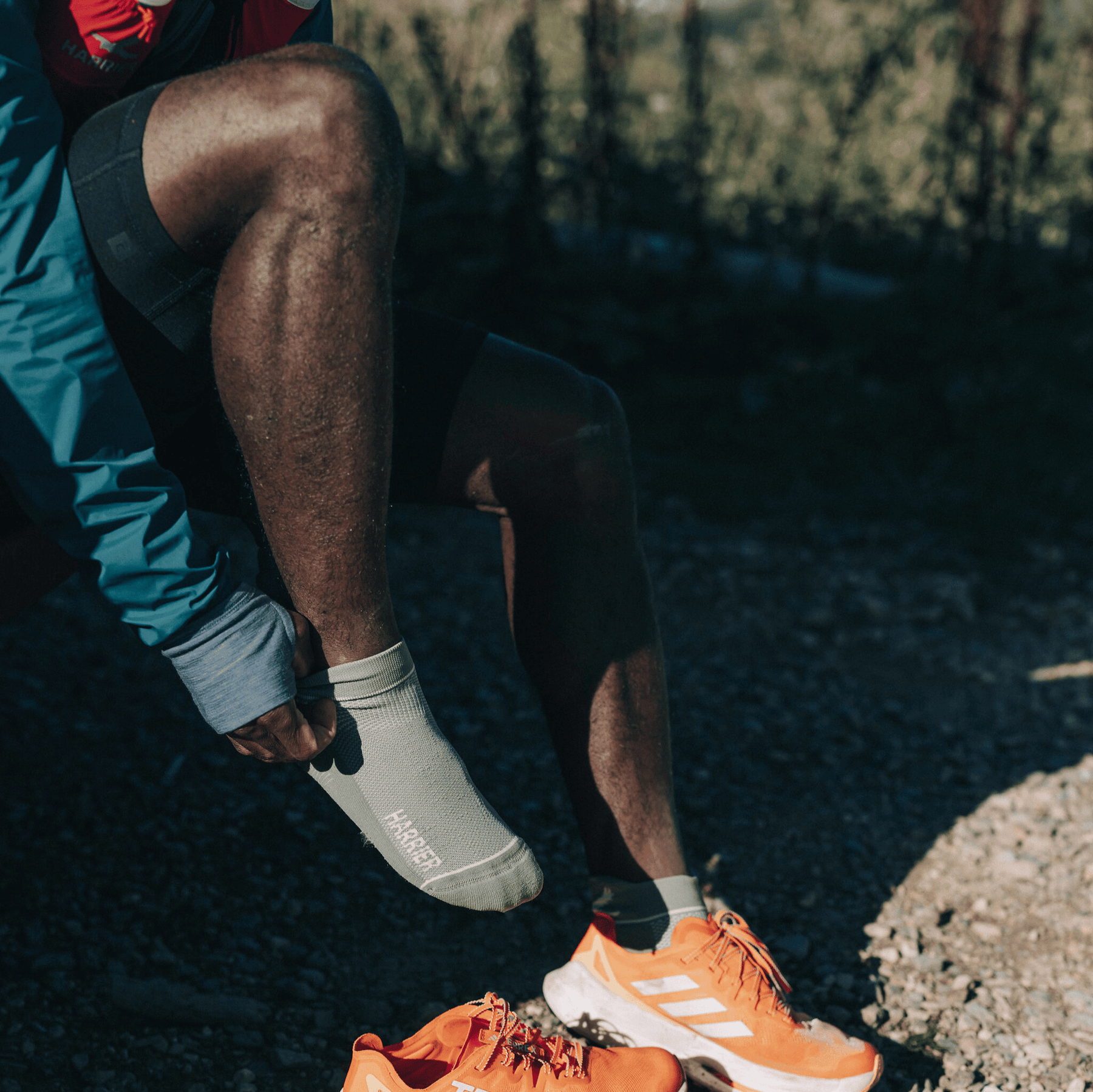 "The new Harrier socks are at a great price point and feature a double layer to protect your feet against blisters. They're a thicker, warmer-feeling sock rather than a slimmer one, which I like for the increased cushioning they provide on trail and ultra runs. The Harrier trail socks are my foot-based weapon of choice"