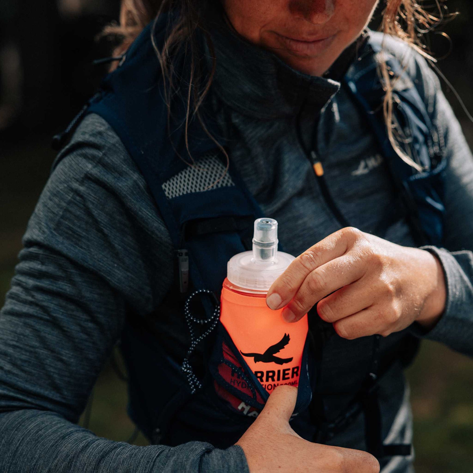 *The bite valve top means no leaks and it’s easy to drink on the go without taking the bottle out of your Harrier race vest pockets. Adding a long straw option saves even more energy and is especially great for ultras, you can add one below.